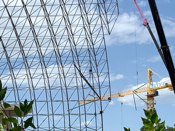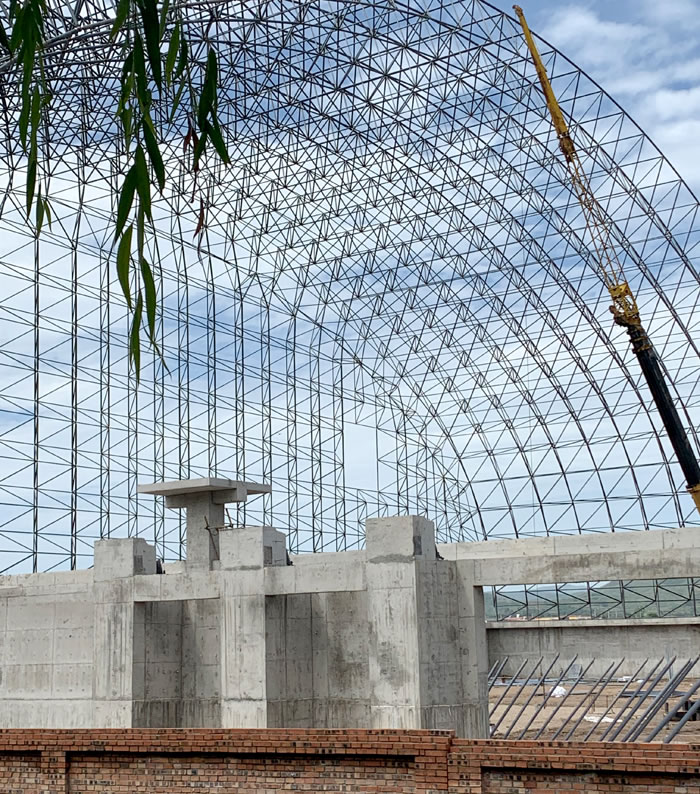 ?。?)網架加工前應對現場尺寸進行復測,確認無誤后方可進行加工、安裝;網架制作、運輸、安裝應遵守《空間網格結構技術規程》JGJ7-2010、《鋼網架螺栓球節點》JG/T 10-2009、《鋼網架螺栓球節點用高強度螺栓》 GB/T 16939-2016、《鋼結構工程施工規范》 GB50755-2012、《鋼結構工程施工質量驗收標準》 GB50205-2020。